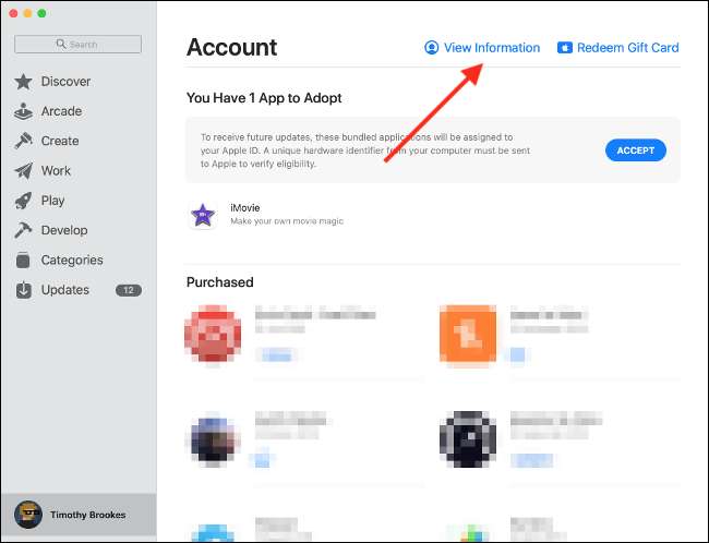 Ensuite, cliquez sur "Afficher les informations" en haut de l'écran. Vous devrez peut-être authentifier à l'aide de votre mot de passe Apple ID car cet écran suivant contient vos informations personnelles. [dix]