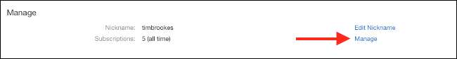 Une fois que vous êtes authentifié, faites défiler jusqu'à la section «Gérer» et cliquez sur le lien «Gérer» en regard du champ d'abonnements. Cette zone devrait vous montrer combien d'abonnements vous avez (ou avaient) actif. [dix]