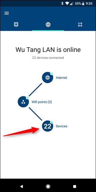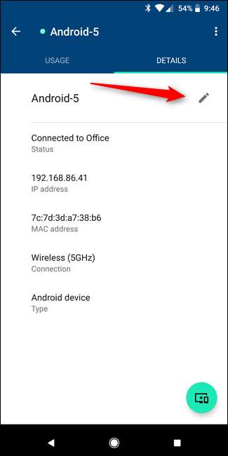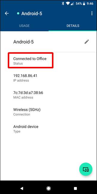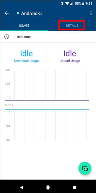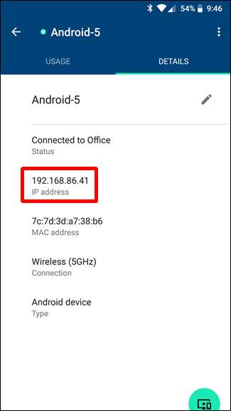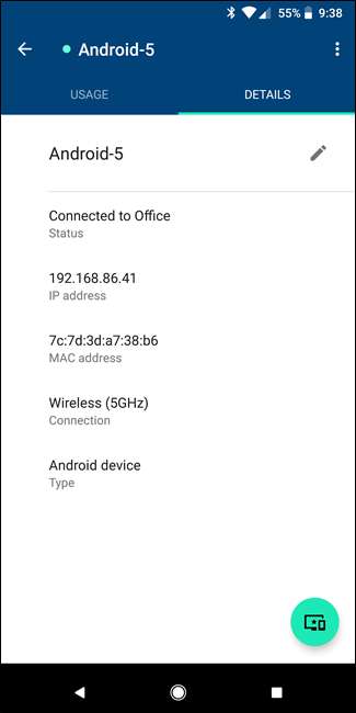 Facile, non? Ouais. Cela fait apparaître une liste de tous les appareils actifs sur votre réseau. Trouvez un appareil qui n'a pas de nom propre, quelque chose de vague, comme "Android-5" Appuyez dessus, puis balayez vers l'onglet Détails.
