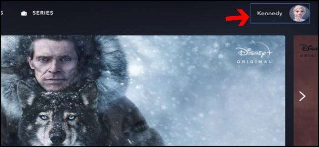 Une fois connecté à Disney + sur votre navigateur, vous serez sur l'écran principal qui montre tous les différents films et émissions de télévision. Une fois que vous êtes sur cet écran, vous verrez votre profil dans le coin supérieur droit. Sélectionnez votre profil pour afficher les autres options en dessous.