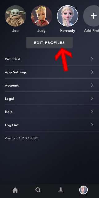 La modification de vos profils sur l'application est un peu plus simple que sur votre navigateur. Lorsque vous cliquez sur l'icône de votre profil dans le coin inférieur droit, cela vous amènera à l'écran avec tous les profils.