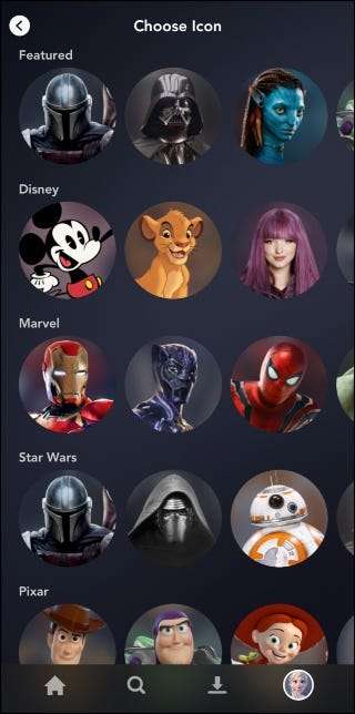 Vous serez redirigé vers une page contenant tous les différents personnages Disney que vous pouvez définir comme photo de profil. Vous pouvez faire défiler toutes les options puis cliquer sur le personnage que vous souhaitez avoir comme photo de profil.