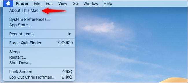 Pour trouver ces informations, cliquez sur l'icône Apple dans la barre de menus dans le coin supérieur gauche de l'écran de votre Mac. Sélectionnez «À propos de ce Mac» dans le menu.