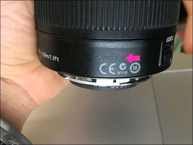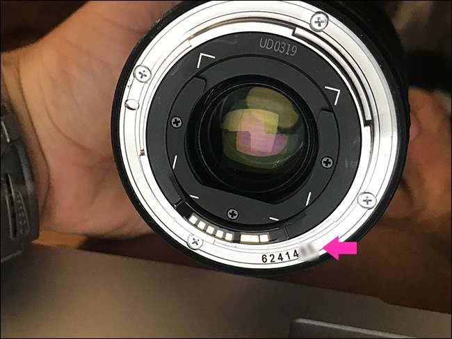 Soyez très minutieux lorsque vous recherchez des numéros de série. Comme vous pouvez le voir sur l'image ci-dessus où le numéro est sur le barillet de l'objectif, ils peuvent être assez faibles et difficiles à trouver. Il peut également y avoir d'autres chiffres de fabrication, donc votre meilleur pari est de simplement tout enregistrer si vous avez des doutes.