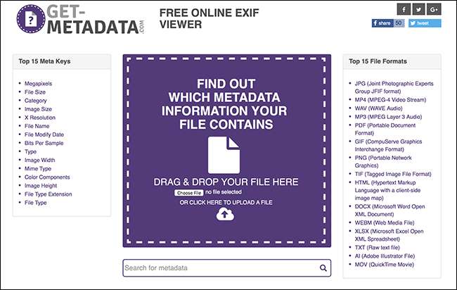 Faites glisser et déposez une image que vous avez prise avec l'appareil photo sur Get-Metadata, puis cliquez sur "Start Analyzing File" pour l'importer. Une image RAW est préférable, mais cela devrait fonctionner avec tout fichier dont vous n'avez pas supprimé les métadonnées.