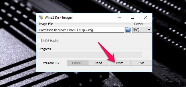 Une fois que vous l'avez configuré, cliquez sur le bouton "Ecrire". Cela écrase les données de la carte SD avec les données de l'image clonée.