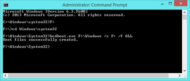 bcdboot.exe X: \ Windows / s X: / f TOUT
