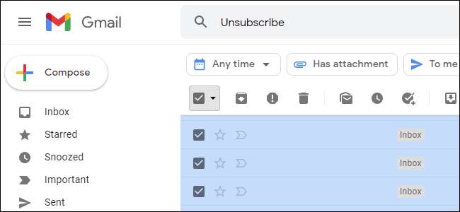 Si vous commencez à les rechercher, vous trouverez beaucoup de courriels inutiles que vous n'avez probablement pas besoin. S'ils ont tous l'air inutile, vous pouvez effectuer rapidement une action «Sélectionner toutes» et les supprimer.