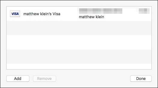 - Cartes de crédit : Cela ouvrira une boîte de dialogue de carte de crédit vous permettant d'ajouter ou de supprimer des informations de paiement. Double-cliquez sur une entrée pour mettre à jour les informations d'une carte de crédit, y compris le nom, le numéro de carte et la date d'expiration du titulaire de la carte. Avant de pouvoir modifier des données sensibles, vous devrez entrer votre mot de passe système.