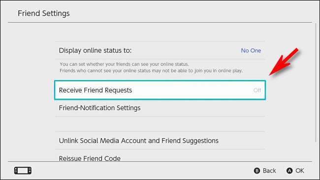 Dans "Paramètres d'ami," Toggle "Recevez des demandes d'amis" à "Off". Cela éteint les demandes d'amis.