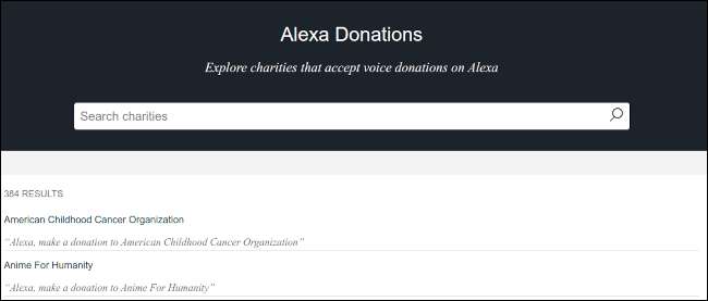 Pour rechercher des œuvres de bienfaisance, utilisez la barre de recherche en haut de la page Alexa Donations.