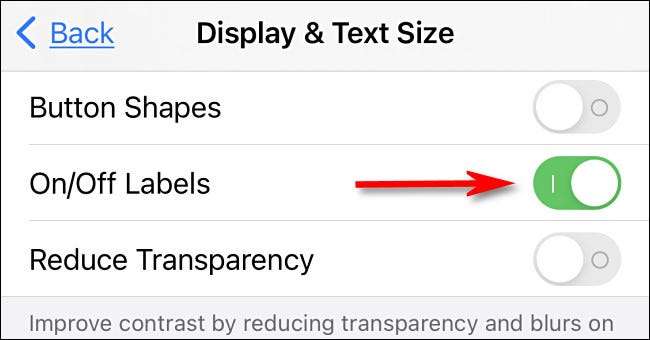 Si vous avez besoin d'un coup de pouce visuel supplémentaire pour rendre les commutateurs encore plus faciles à voir, appuyez sur le commutateur "Augmenter le contraste" sur cette même page (dans "Accessibilité" et GT; "Affichage et amplis; Taille du texte".) Lorsque vous avez terminé, Laissez l'application Paramètres. Les changements seront actifs.
