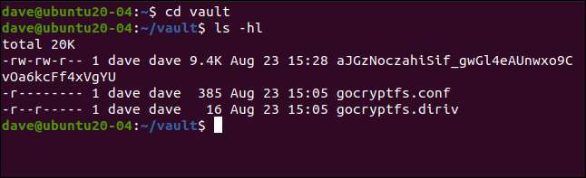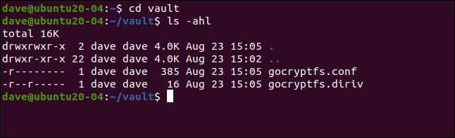 «Gocryptfs.diriv» est un court fichier binaire, tandis que «gocryptfs.conf» contient des paramètres et des informations que vous devez garder en sécurité.