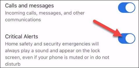 Vous verrez quelques types de notifications différents que l'application Google Home peut fournir. Celui que vous devez activer est "Alertes critiques".