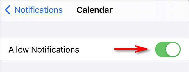 Tout d'abord, pour que cela fonctionne, vous devez avoir Notifications activées pour l'application de calendrier. Pour résumer, visitez les paramètres et GT; Notifications & GT; Calendrier et réglez le commutateur à côté de "Autoriser les notifications" à "ON".
