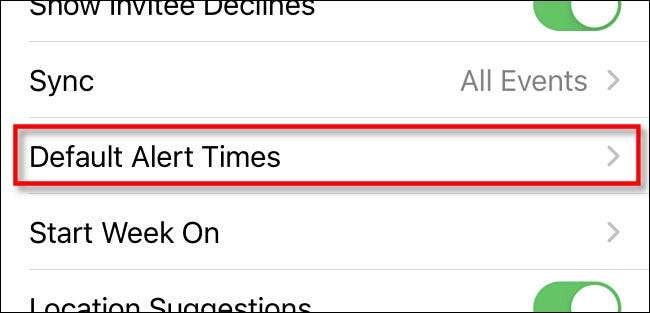 Dans les paramètres "calendrier", appuyez sur "Temps d'alerte par défaut".