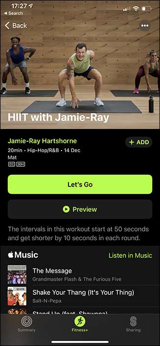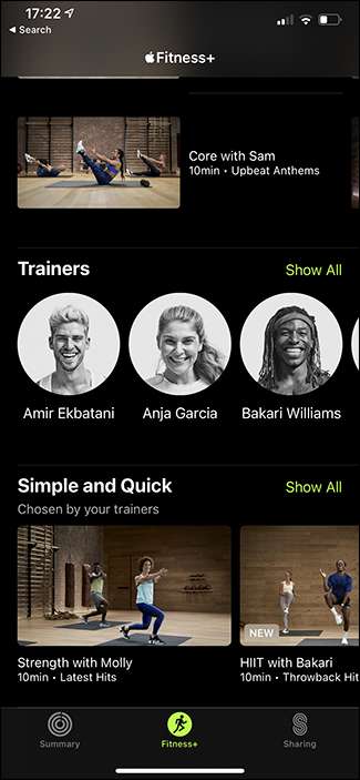 [dix] Travailler avec Apple Fitness + est assez simple. Trouvez simplement une séance d'entraînement que vous souhaitez faire, appuyez sur "Allons-y", puis suivez les instructions des formateurs. Ils font un excellent travail de briser et de démontrer tous les mouvements différents. [dix]