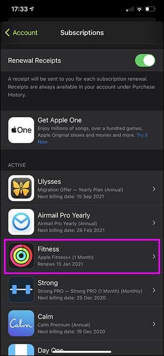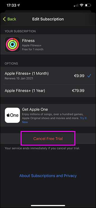 [dix] Lorsque vous vous inscrivez pour l'essai gratuit, vous acceptez également de payer 9,99 $ par mois (ou 79,99 $ par an) après la fin du procès. Si vous décidez que vous n'aimez pas Apple Fitness +, assurez-vous d'annuler votre procès tout de suite pour que vous n'oubliez pas. [dix] Pour ce faire, ouvrez l'application Fitness +, appuyez sur votre image de profil en haut à droite, puis appuyez sur votre nom pour voir tous vos abonnements. [dix]