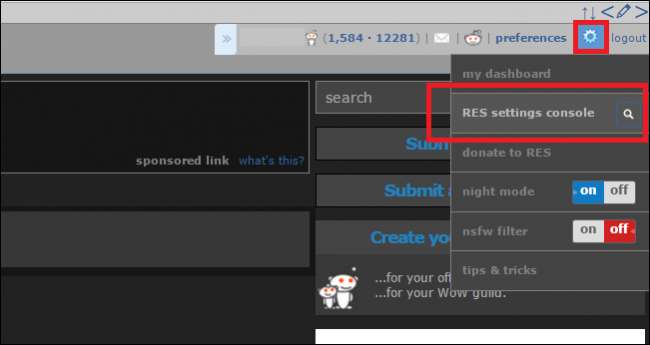 RES simplifie cette opération, vous donnant la possibilité de contrôler étroitement la façon dont les commentaires sont affichés, quelles histoires se classent les unes sur les autres et à quoi ressemble votre page d'accueil chaque fois qu'elle se recharge. Tous les paramètres de configuration qui contrôlent RES peuvent être trouvés en cliquant sur l'icône d'engrenage dans le coin supérieur droit, et en sélectionnant «RES Settings Console».