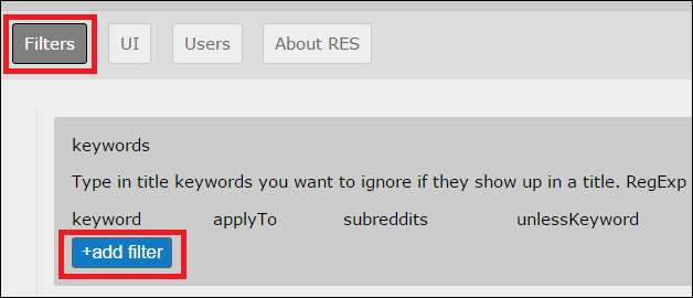 Pour créer un filtre, vous devez commencer par accéder à la console des paramètres RES, qui se trouve dans le menu déroulant des engrenages. À partir de là, vous devrez sélectionner l'onglet "Filtres", dans lequel vous pourrez ajouter, supprimer ou contrôler le niveau de restriction sur lequel chacun de vos filtres est défini.