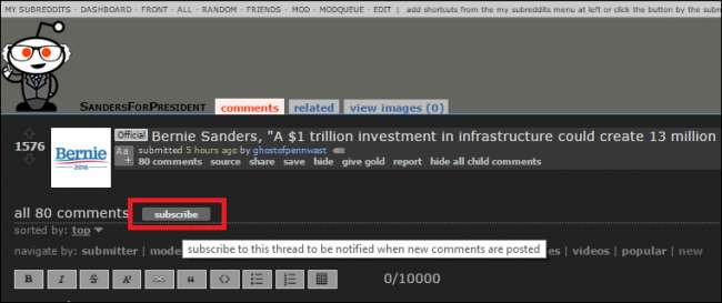 Vous êtes-vous déjà retrouvé à vous présenter à un fil de discussion tôt, pour découvrir deux ou trois commentaires épars sans vote positif entre eux? S'il s'agit d'un sujet qui vous intéresse particulièrement, vous pouvez cliquer sur le bouton "S'abonner" sous le titre principal pour recevoir une série de notifications chaque fois qu'une nouvelle personne ajoute un commentaire ou une réponse.