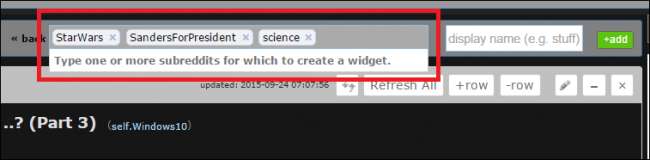 Choisissez le type de widget que vous souhaitez activer (sous-reddit, utilisateur, chaîne de commentaires, etc.) dans la barre de recherche qui apparaît et saisissez le contenu que vous souhaitez épingler sur la page. Vous pouvez saisir plusieurs identifiants à la fois afin que tous les widgets associés se chargent en même temps.