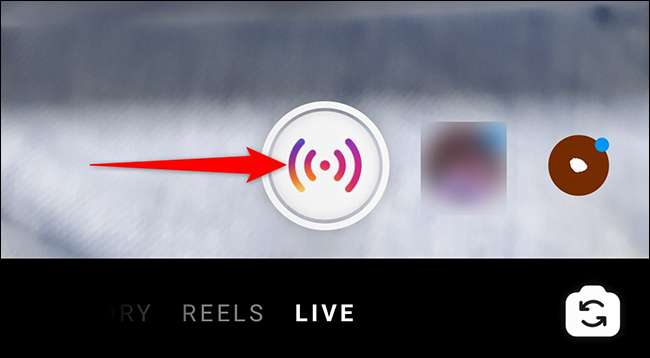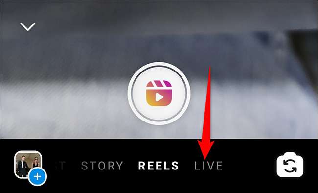 Sur l'écran "Votre histoire", en bas, faites glisser la gauche et sélectionnez l'option "Live".