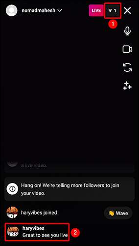 Lorsque vous êtes allé en direct, dans le coin supérieur droit de l'application Instagram, vous verrez le nombre de personnes en regardant votre vidéo en direct. Au bas de cet écran, vous verrez le Commentaires de vos téléspectateurs [dix] .