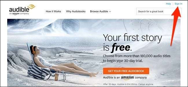 Si vous ne possédez pas encore de compte Audible, vous pouvez facilement en créer un. Étant donné qu'Amazon possède Audible, il est très simple et rapide de s'inscrire au service de livres audio. Commencez par vous rendre sur le site Web d'Audible et cliquez sur "Connexion" dans le coin supérieur droit de l'écran.