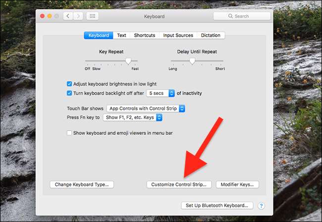 Si vous utilisez le dernier MacBook Pro avec Touchbar, vous pouvez ajouter un bouton dédié pour verrouiller votre Mac. Allez dans Préférences Système> Clavier, puis cliquez sur le bouton «Personnaliser la bande de contrôle».