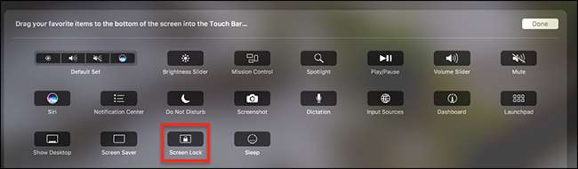 Faites glisser le bouton de l'écran de verrouillage au bas de votre écran et sur votre barre tactile. Vous pouvez placer le bouton dans la collection de quatre boutons qui sont toujours à l'écran ou dans le jeu de clés étendu, selon ce qui vous convient.