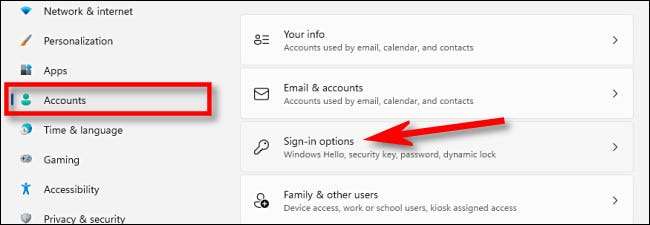Bien que toujours dans l'application Paramètres (Appuyez sur Windows + I pour le ramener si vous la fermez), cliquez sur «Comptes» dans la barre latérale, puis sélectionnez «Options de connexion».