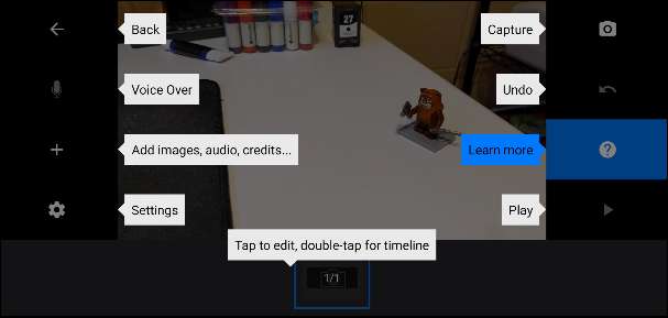 Vous allez maintenant voir l'écran de l'éditeur vidéo. Il existe un certain nombre de boutons à gauche et à droite du viseur. La chronologie est située en bas du bas de l'écran, située où les cadres apparaîtront.