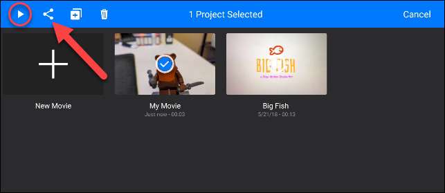 Appuyez sur l'icône de lecture pour obtenir un aperçu de la façon dont la vidéo finale sera l'air. Si vous êtes heureux avec cela, appuyez sur l'icône Share.