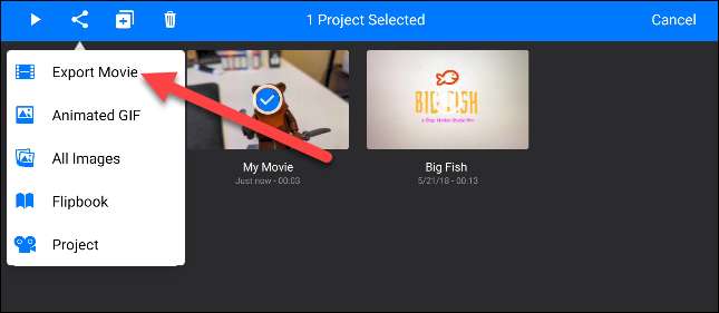 Sélectionnez "Exporter un film" pour télécharger le fichier ou le partager avec une autre application. Vous pouvez également choisir d'exporter comme un "GIF animé".