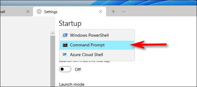 Dans le menu déroulant Profil par défaut, sélectionnez "Invite de commande".