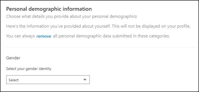 Vous pouvez également indiquer votre sexe et votre statut d'invalidité dans la section «Informations démographiques personnelles». Ceux-ci seront utilisés pour les fonctionnalités de LinkedIn, mais ne seront pas affichés sur votre profil.
