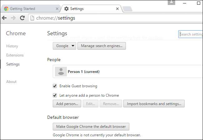 Vous souhaiterez également modifier votre ordinateur pour utiliser Chrome comme navigateur Web par défaut. Sous Windows 7 et 8.1, Chrome peut devenir automatiquement votre navigateur par défaut en un seul clic. Ouvrez le menu de Chrome, sélectionnez "Paramètres" et cliquez sur "Définir Google Chrome comme navigateur par défaut" sous Navigateur par défaut au bas de la page Paramètres.