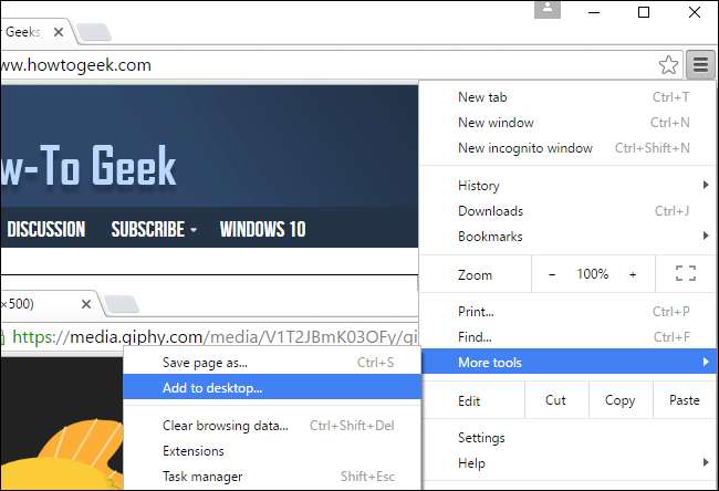 Pour supprimer un site Web de votre navigateur, accédez au site Web, cliquez sur le bouton de menu et sélectionnez Plus d'outils> Ajouter au bureau. Cochez l'option "Ouvrir en tant que fenêtre" et vous obtiendrez un raccourci sur le bureau qui ouvrira une page Web dans sa propre fenêtre. Double-cliquez sur le raccourci du bureau et vous pouvez alors épingle la fenêtre du site Web directement dans votre barre des tâches.