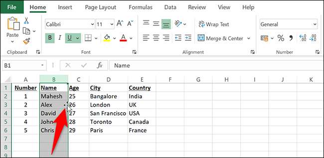 Pour utiliser cette méthode, trouvez d'abord la colonne que vous souhaitez déplacer dans votre feuille de calcul. En haut de cette colonne, cliquez sur la lettre de colonne afin que toute la colonne soit sélectionnée.