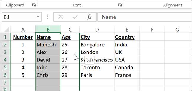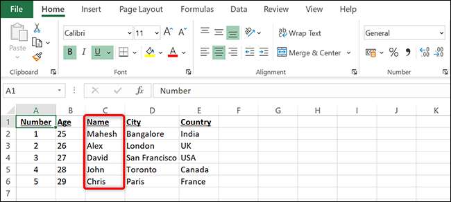 Une autre façon de déplacer une colonne dans votre feuille de calcul est en coupant et en collant la colonne.