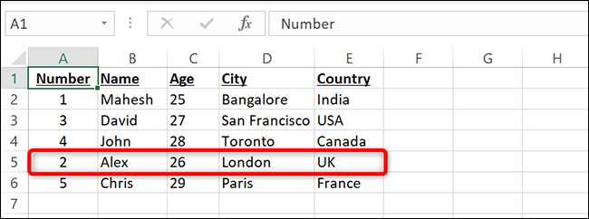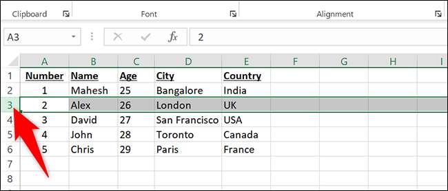 Tout d'abord, trouvez la ligne pour vous déplacer dans votre feuille de calcul. Cliquez ensuite sur ce numéro de la ligne à l'extrême gauche de votre feuille de calcul.
