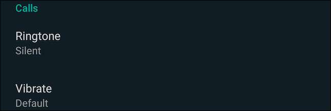 Sous "Notifications d'appel" au bas de la page, définissez "Sonnerie" sur "Aucun" et "Vibrate" à "Off".
