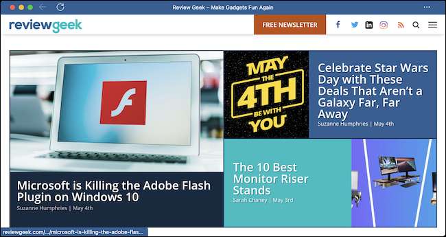 Edge ouvrira le site Web dans sa propre fenêtre d'application et ouvrira également le dossier "Edge Apps" de Finder. (Vous pouvez y accéder plus tard plus tard en recherchant des "applications de bord" dans la recherche de projecteur.)