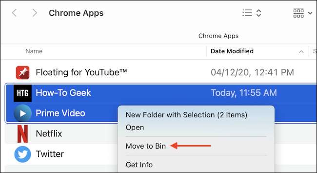 Ici, sélectionnez les applications que vous souhaitez supprimer, cliquez avec le bouton droit de la souris et choisissez l'option "Passer à la corbeille". (Vous pouvez également utiliser la commande + Supprimer le raccourci clavier ou faites glisser l'icône sur la corbeille de votre quai.)