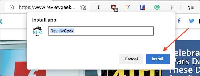 Dans la fenêtre contextuelle, modifiez le titre de l'application (si vous voulez) et cliquez sur le bouton "Installer".