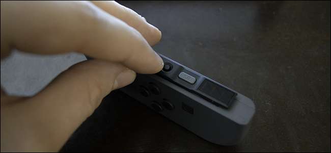 Pendant cette phase, vous pouvez facilement coupler des contrôleurs d'autres consoles à votre Switch. Pour associer un contrôleur Joy-Con à votre Switch, maintenez le petit bouton rond le long du bord plat du contrôleur jusqu'à ce que la rangée verte de voyants commence à clignoter.