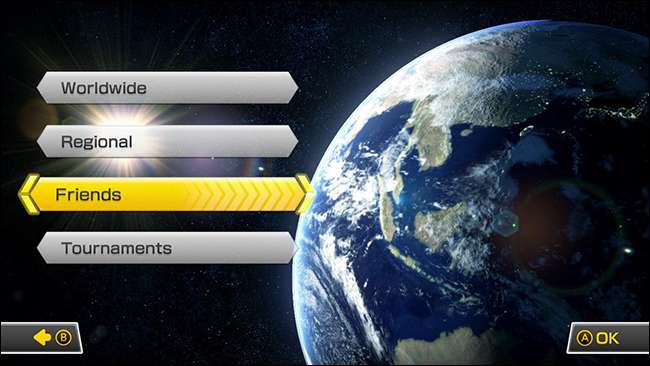 Dans le menu Jeu en ligne, choisissez Amis. Les modes Mondial et Régional vous associent à des joueurs de Mario Kart d'ailleurs dans le monde, même si vous n'êtes pas amis. Pour ce guide, cependant, nous supposerons que vous ne voulez exaspérer que les personnes qui savent où vous vivez.