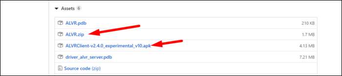 Pour commencer, vous devez télécharger ALVR. Dirigez-vous vers son Page GitHub et téléchargez la dernière version . Téléchargez le fichier ALVR.zip, qui est le serveur qui fonctionnera sur votre PC. Vous devrez également télécharger l'ALVRClient, qui est l'application dont vous avez besoin pour charger de côté sur votre Quest.