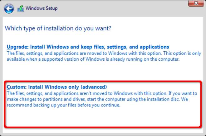 Windows 10 vous demandera la version que vous possédez (Home, Pro, etc.). Après cela, sélectionnez «Personnalisé: Installer Windows uniquement» dans la fenêtre suivante. Ce n’est pas une mise à jour étant donné que vous partez de zéro.